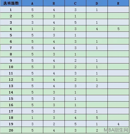 現(xiàn)在就開始測驗(yàn),選出每一題選項之后,根據(jù)下方“分?jǐn)?shù)評價表”換算總分,再參考“分?jǐn)?shù)說明”解析自己的職場競爭力: