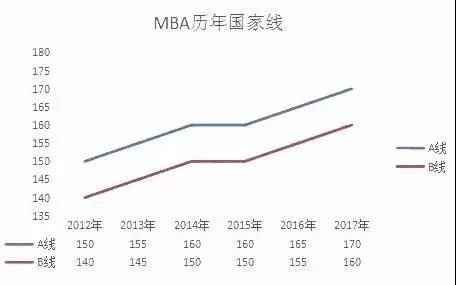 分析:通過近6年MBA國(guó)家線的折線圖可以看出A線、B線平穩(wěn)增長(zhǎng),趨于穩(wěn)定。雖然期間報(bào)考人數(shù)和實(shí)考人數(shù)的大幅增加,并未帶來A線、B線的大幅增加,說明沒有認(rèn)真復(fù)習(xí)的大有人在,所以認(rèn)真?zhèn)淇紝?shí)為成功利器。