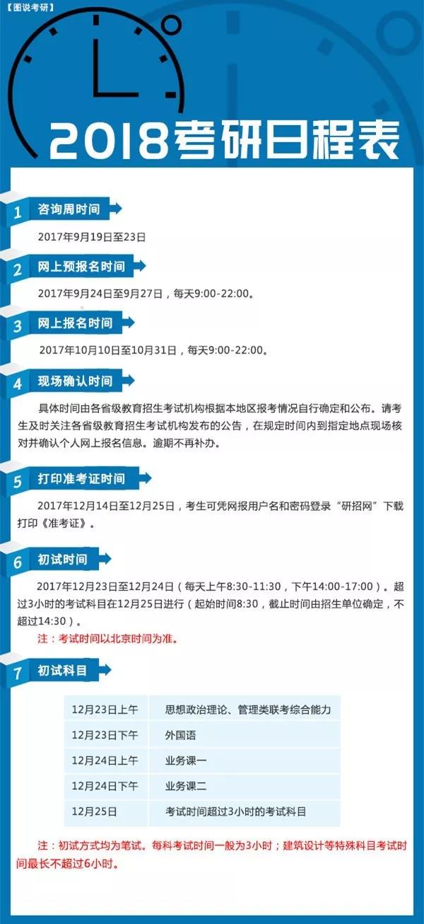 除了初試時間,2018考研還有哪些重要日程呢?馬上看圖了解。