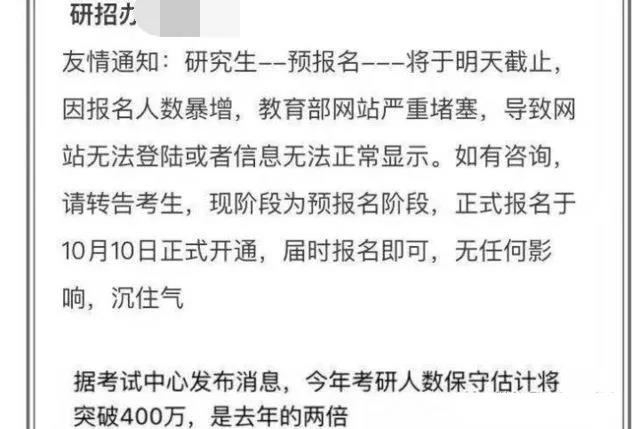 歷經(jīng)九九八十一難以及四天的折磨,終于預(yù)報名結(jié)束,可以放寬心了。然并卵,一條消息迅速出現(xiàn)在朋友圈、QQ空間、微博、QQ微信群組以及我們所有有可能跟考研沾邊的地方……