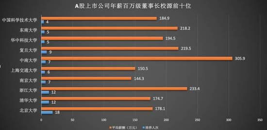 通過數(shù)據顯示,北京大學培養(yǎng)的百萬年薪的A股高管共計18位,富豪數(shù)量為全國高校之首,清華大學和浙江大學則以12位的高管數(shù)量排緊隨其后,而在平均薪酬來看,中南大學以305.9萬元的黑馬之勢在眾高校中遙遙領先。