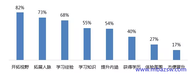 優(yōu)唯通過案頭研究、大數(shù)據(jù)分析、在線網(wǎng)絡調(diào)研問卷和深度訪談,有如下發(fā)現(xiàn),開拓視野、拓展人脈和學習經(jīng)驗和知識是學員報讀EMBA的主要原因;