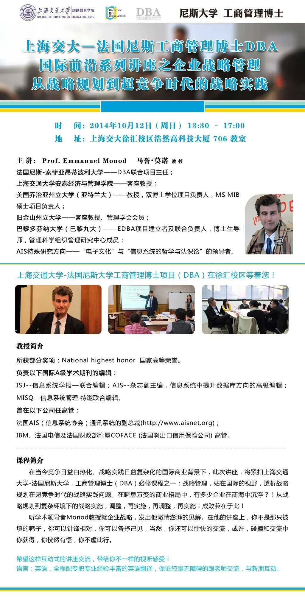 10月12日:上海交大尼斯DBA國際前沿系列講座