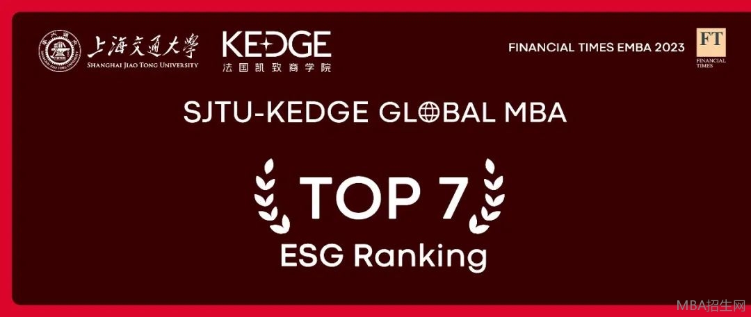 上海交大-KEDGE GMBA項(xiàng)目的最新定位,圍繞積極促進(jìn)企業(yè)在環(huán)境和社會(huì)方面的貢獻(xiàn)展開,響應(yīng)了學(xué)校在極力支持其合作企業(yè)向更大程度的可持續(xù)經(jīng)營轉(zhuǎn)型的承諾。在ESG這一單項(xiàng),項(xiàng)目位列全球第7位!