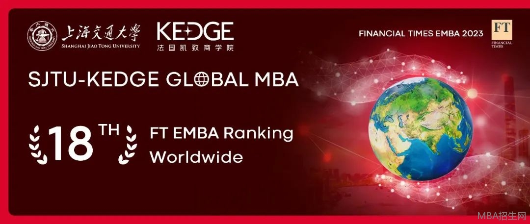 10月15日,英國《金融時(shí)報(bào)》(Financial Times)公布了2023年全球EMBA項(xiàng)目百強(qiáng)榜,上海交通大學(xué)-法國凱致商學(xué)院國際在職MBA項(xiàng)目(SJTU-KEDGE Global MBA)榮登全球第18位,躋身世界20強(qiáng)之列,較去年排名上升了24位!二十年來,這一項(xiàng)目始終在法國和中國表現(xiàn)亮眼,2023年最新排名中位列全法前5,中國前6!