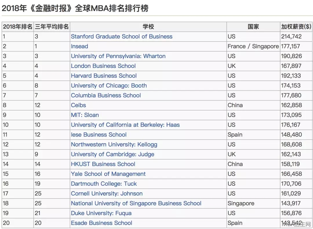 今年 1 月 28 日,也就是前不久,英國《金融時(shí)報(bào)》(Financial Times ,以下簡稱 FT)發(fā)布了 2018 年全球  MBA 項(xiàng)目排行榜。第一名被斯坦福大學(xué)商學(xué)院(Stanford Graduate School of Business)奪得;而歐洲工商管理學(xué)院(Insead)比去年降低一位,排名第二。值得一提的是,在排行榜前十中,有九個(gè)  MBA 項(xiàng)目是兩年制的,僅有排名第二的 Insead 是一年制的。