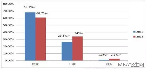 2013年和2018年本科畢業(yè)生畢業(yè)去向