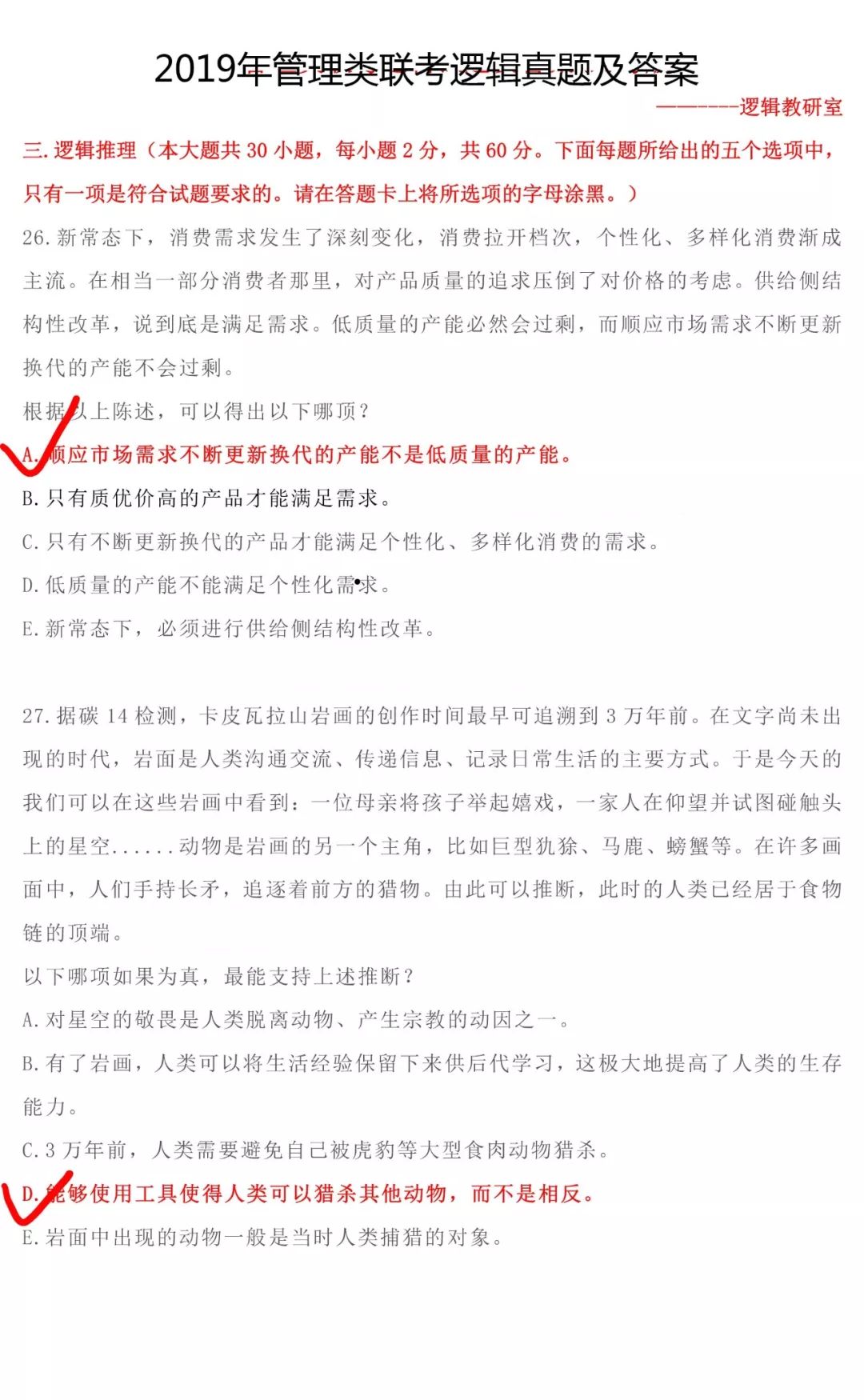 注意!2019考研邏輯真題及答案匯總來了!