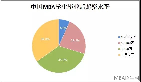 據(jù)不完全統(tǒng)計(jì),中國MBA學(xué)生畢業(yè)后有6.6%的人年薪在100萬以上,23.1%的人年薪50萬到100萬,35.5%的人年薪在30萬到50萬,余下的34.8%的人年薪在30萬以下。近些年,受市場的影響,中國MBA畢業(yè)生漲幅高于歐美。