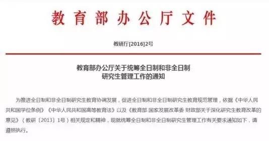 從2017年起,教育部會(huì)同國家發(fā)展改革委按全日制和非全日制兩類分別編制和下達(dá)全國博士、碩士研究生招生計(jì)劃。全日制和非全日制研究生考試招生依據(jù)國家統(tǒng)一要求,執(zhí)行相同的政策和標(biāo)準(zhǔn)。
